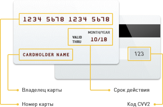 При оплате заказа банковской картой, обработка платежа происходит на авторизационной странице банка, где Вам необходимо ввести данные Вашей банковской карты: